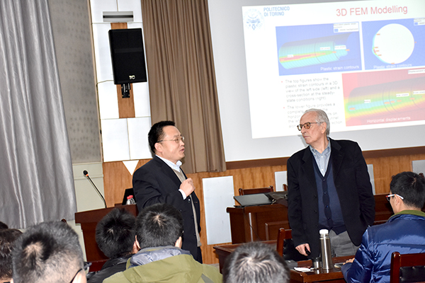11月20日下午,应米兰官网入口_米兰(中国)焦玉勇院长、唐志成博士邀请,岩石力学与工程领域国际知名专家、国际岩石力学领域权威期刊《Rock Mechanics and Rock Engineering》主编、意大利都灵理工大学Giovanni Barla教授来校做主题为 “Monitoring and modelling of tunnels and caverns”的学术报告。焦玉勇院长主持了报告会,学院60余名师生聆听了报告。