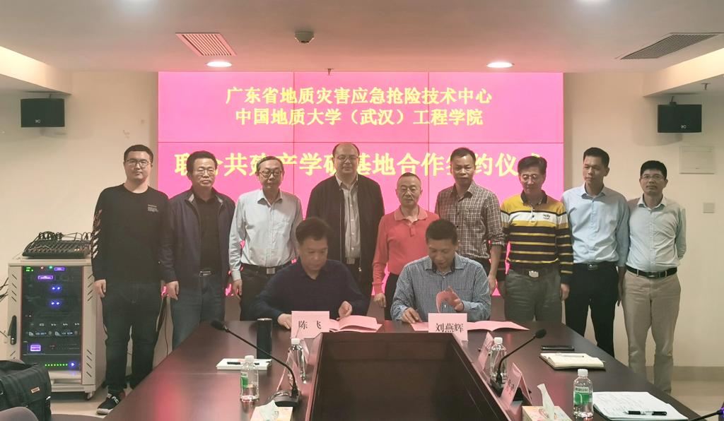 陈飞、刘燕辉签署产学研基地合作协议。根据协议,广东省地质灾害应急抢险技术中心作为中国地质大学(武汉)米兰官网入口_米兰(中国)的产学研基地,双方将定期就人才的培训、技术的创新、引进与推广、联合攻关、学生实习等方面开展协商研究。