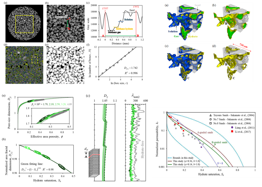 非常规能源天然气水合物储层结构特征及其渗透率演化规律是水合物高效开采的关键信息,但如何有效刻画和定量表征一直是领域瓶颈难题。宁伏龙教授研究团队与青岛海洋地质研究所合作,