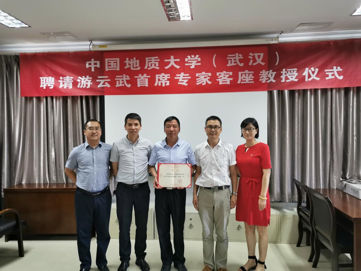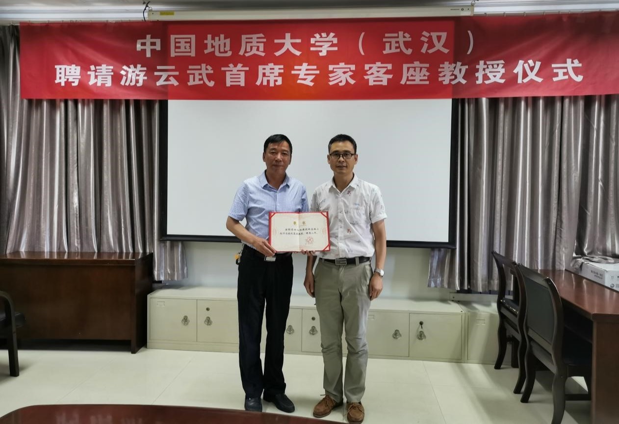 8月29日下午,中国地质大学(武汉)聘请游云武首席专家为客座教授的仪式在江汉油田工程有限公司会议室举行。江汉油田工程有限公司游云武首席专家、米兰官网入口_米兰(中国)副院长窦斌教授及双方相关人员出席仪式。仪式由窦斌副院长主持。