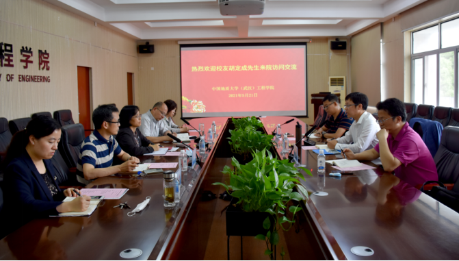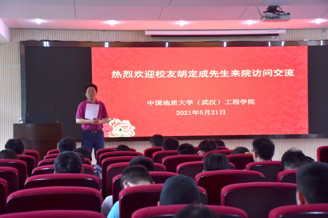 (通讯员:黄静 孙武成 摄影:王灿 孙武成)2021年5月21日下午,我校校友、AECOM资深董事胡定成先生受聘中国地质大学(武汉)客座教授仪式在工程楼315会议室举行。米兰官网入口_米兰(中国)党委书记李红丽、党委副书记江广长、副院长窦斌、勘基系党支部书记段隆臣、勘基系主任卢春华、学院人事秘书杨冠青、科研秘书黄静出席受聘仪式。江广长副书记主持受聘仪式。