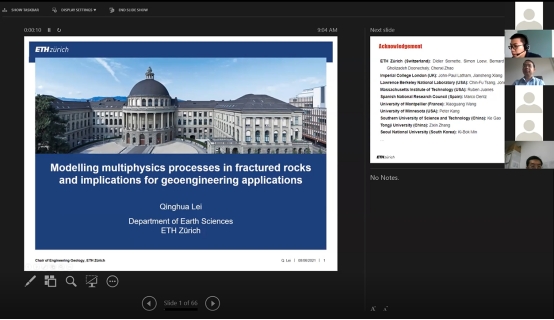 (通讯员:周佳庆)2021年6月8日下午,应中国地质大学(武汉)唐辉明教授和李长冬教授邀请,瑞士苏黎世联邦理工学院雷庆华高级研究员和瑞典皇家理工学院邹良超研究员应邀作客2021年第1-2期“重大地质灾害预测与防控学科”111创新引智基地系列学术讲座。讲座采用Zoom在线会议形式,由李长冬教授主持,吴琼教授、周佳庆副教授、祝国强副研究员、鲁莎助理研究员及香港大学、武大大学、浙江大学、中南大学、中国石油大学、东南大学、北京交通大学、南昌大学、重庆大学、西安交通大学、中国科学院武汉岩土力学研究所等多个单位80余名师生在线聆听了此次报告。