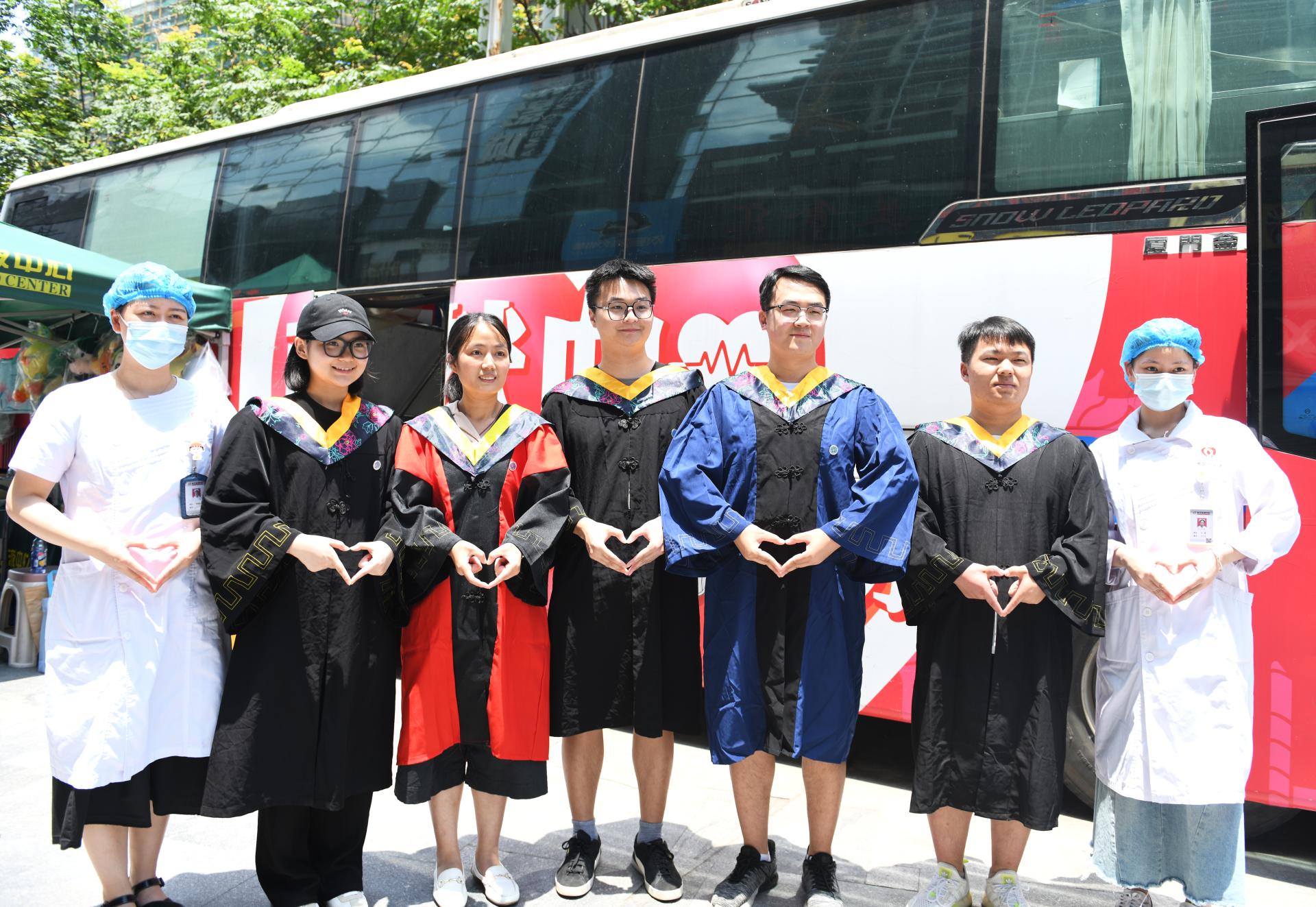 2022年6月14日,米兰官网入口_米兰(中国)6名毕业生不约而同来到学校附近的光谷献血点,参加无偿献血。张玉贤 摄