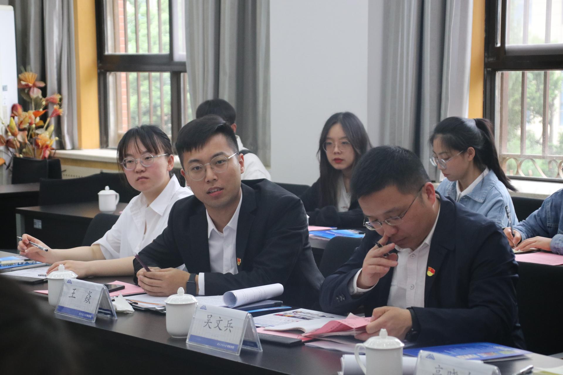 首先,张成凤和高晓东分别介绍了参会人员,详细讲解了学院发展历程、学科特色、师生情况、学生工作等内容。学生党建专职辅导员朱凡凡、党建辅导员王焱分别介绍了本院学生党支部设立方式、组织架构以及学生党建工作的特点和下一步工作思路。
