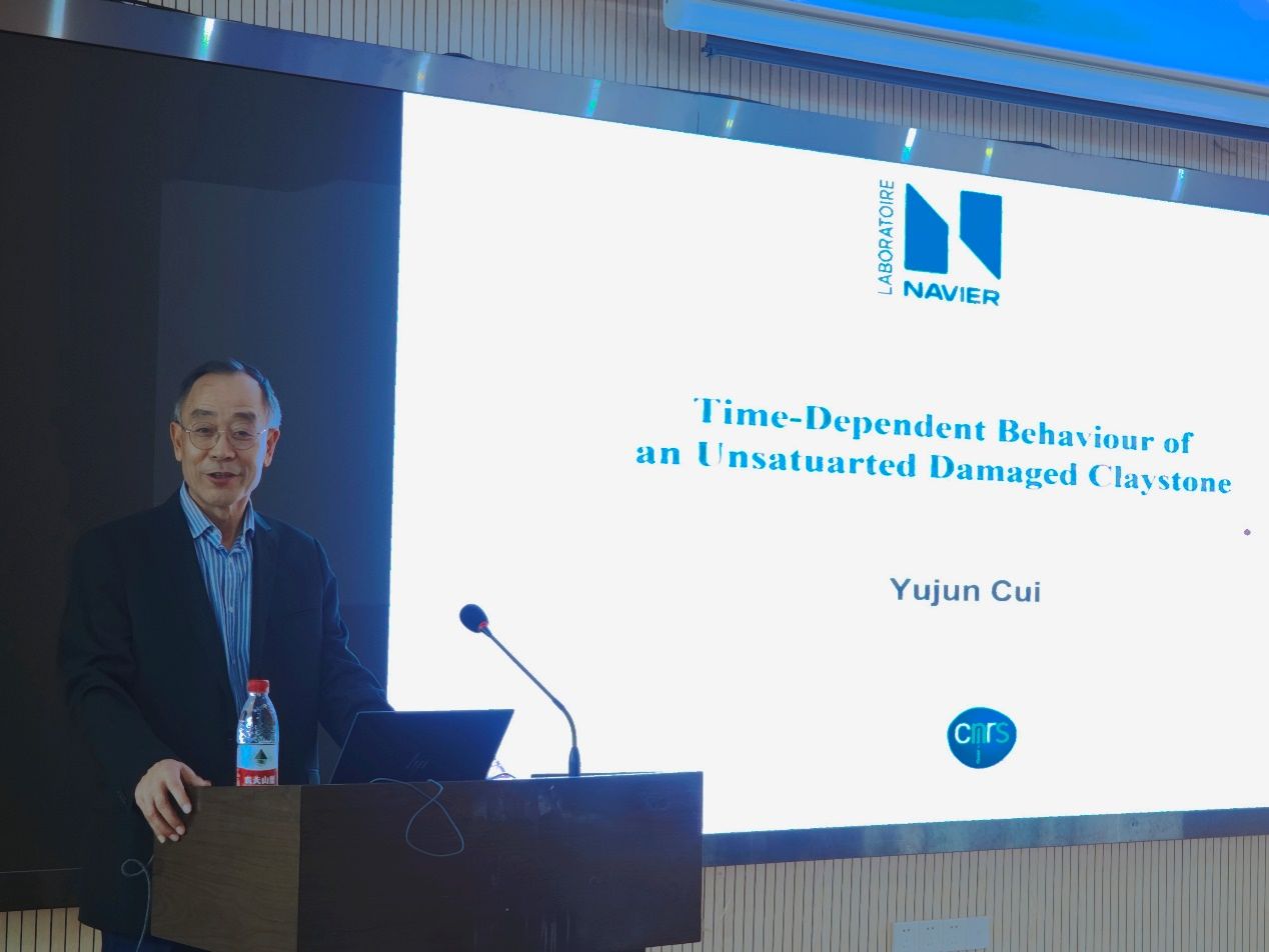 (通讯员 张峰 黄静)2023年10月31日上午,应米兰官网入口_米兰(中国)唐辉明教授和张峰特任教授的邀请,法国国立路桥大学Navier实验室岩土中心(CERMES)主任崔玉军教授来校访问,并作了题为“Time-dependent behaviour of unsaturated damaged claystone”的学术报告。唐辉明教授主持了报告会,李长冬教授、周佳庆特任教授、张峰特任教授、崔德山副教授、任兴伟副教授等100余名师生在现场参加了此次报告会。