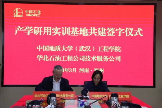 (通讯员 杨现禹)2024年03月09日上午,我院与中石化华北石油工程有限公司技术服务公司在郑州市签署联合共建产学研用实训基地合作协议。我院党委书记李红丽、勘察与基础工程系主任卢春华,以及段隆臣、蔡记华、杨现禹等5位教师,中石化华北石油工程有限公司总经理艾昆、副总工程师蒋新立、技术发展部经理焦延安、公司高级专家张家华、技术服务公司经理张军义、技术服务公司副经理夏烈虎和董强伟参加签约仪式,艾昆主持会议。
