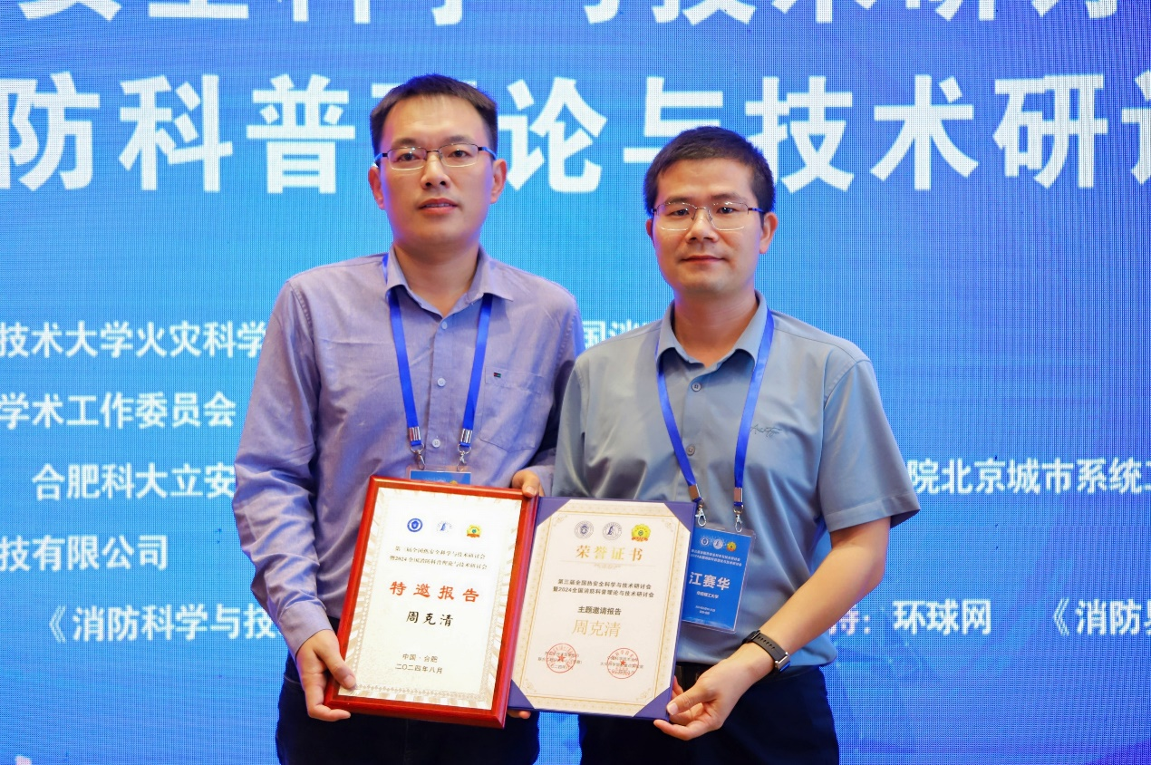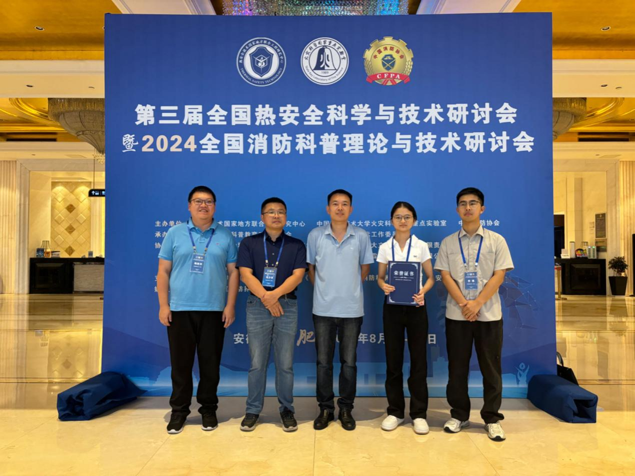 (通讯员 陆凯华 周克清)2024年8月19-21日,第三届全国热安全科学与技术研讨会暨2024年全国消防科普理论与技术研讨会在中国合肥召开。本次大会全面展示了近年来全国热安全科学领域学者在热安全研究方面的最新进展和成果,涵盖了火灾动力学,地下空间与隧道火灾防治,高层建筑火灾防治,火安全材料等目前国际热安全重点、热点研究方向。安全工程系周克清特任教授、毛少华特任研究员、陆凯华副教授、李博副教授和研究生石杨锦参加会议,四位老师分别担任大会程序委员会成员和分会场主席。