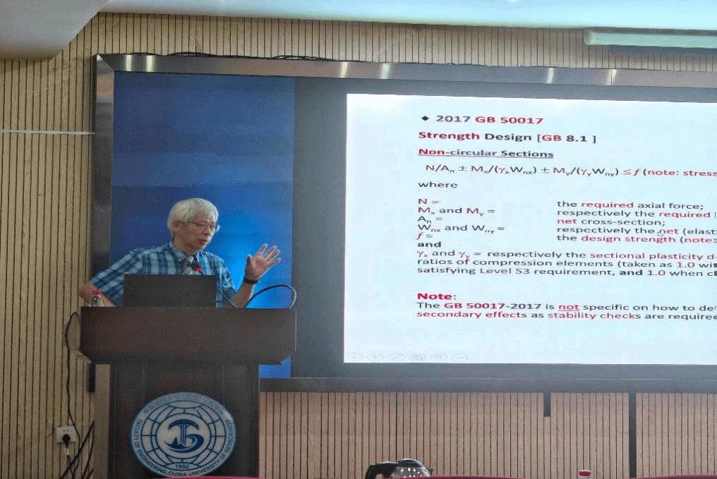 陈幼佳教授以“钢结构设计-AISC对比GB:原理与实例”为题,讲解2023版AISC LRFD(最新版)与2017版GB 50017(中国钢结构设计标准)的钢结构设计准则。报告首先介绍了AISC LRFD的设计理念,随后选取中美两部规范中的关键设计公式,从公式的推导逻辑、参数设定以及适用范围等多个维度展开细致对比。此次报告通过对中美钢结构设计规范的深入剖析,不仅加深了参会人员对不同设计准则的理解,更为行业内的技术交流与经验共享搭建了良好平台。在未来的钢结构工程设计中,这些知识与经验将助力工程师们设计出更安全、更经济、更合理的钢结构建筑。