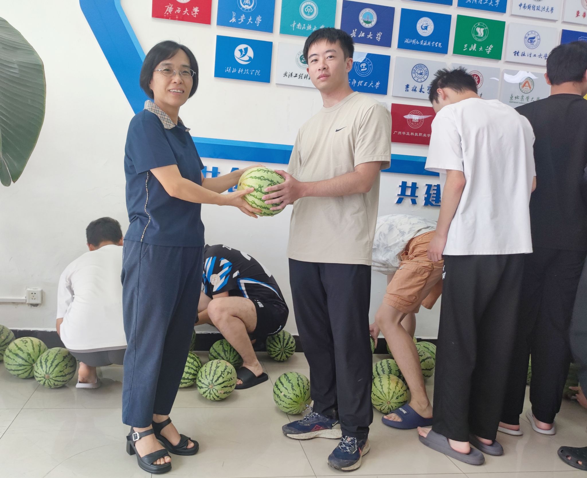 在秭归实习站期间,李红丽等老师为全体实习师生及基地管理人员发放防暑物资、学习文具等慰问品,在炎炎夏日里为野外实习师生送来丝丝清凉与温暖关怀,她细致询问大家的实习体验与生活情况,再三叮嘱大家务必注意防暑降温、合理作息,确保实习工作安全有序推进。