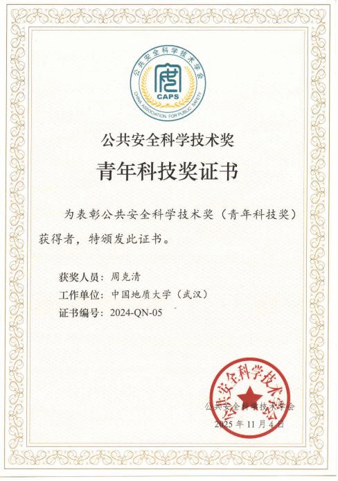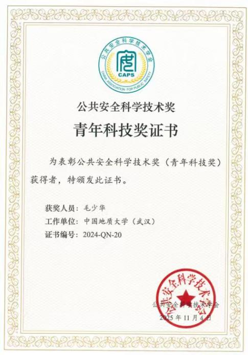 开幕式上,举行了公共安全科学技术奖颁奖仪式,我院安全工程系周克清特任教授和我院研究生导师毛少华研究员获公共安全科学技术奖青年科技奖。2024年度公共安全科学技术奖青年科技奖共授予高校组19人和科研/企业组1人,旨在表彰在自然科学研究、工程技术、科技成果推广转化及科技管理工作中做出突出贡献的青年学者。