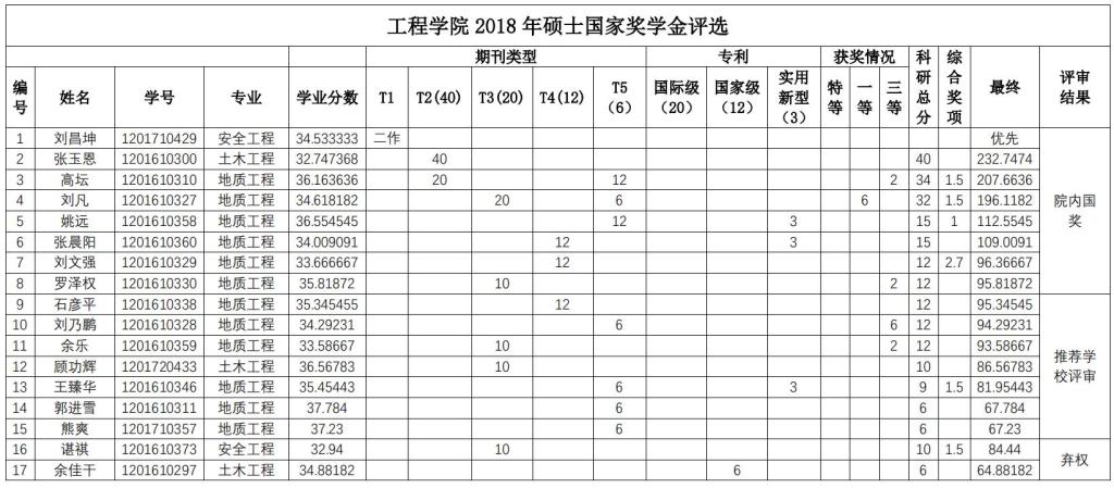 经个人申报,学院研究生国家奖学金评审委员会秘书处资格审查,学院研究生国家奖学金评审委员会于2018年9月29日下午组织通过资格审查的申报者(其中博士研究生14人,硕士研究生17人)进行答辩评审,学院研究生国家奖学金监审委员会全程监督。会议确定了刘昌坤等8名硕士研究生,刘浩等4名博士研究生为米兰官网入口_米兰(中国)2018 年研究生国奖学金候选人。现将米兰官网入口_米兰(中国) 2018 年国家奖学金候选人公示(见下表)。