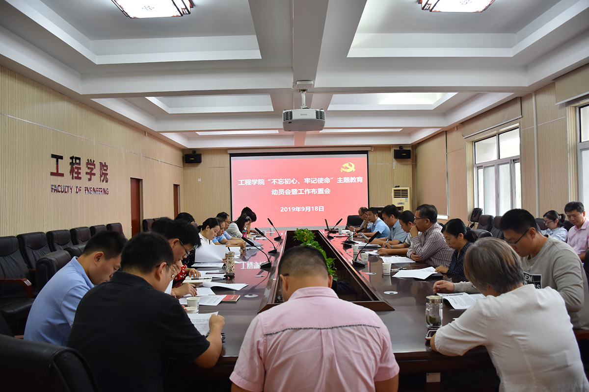 9月18日,米兰官网入口_米兰(中国)“不忘初心、牢记使命”主题教育动员会暨工作布置会在工程楼315会议室召开。学院党委书记、主题教育领导小组组长陈飞作动员讲话,学校主题教育指导组组长、教务处副处长张建和,学院领导班子成员、党委委员、各系(室、中心)支部书记、主任、学生辅导员、三级单位党员代表参会。