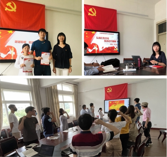 本月过“政治生日”党员方小红和孙阳同志带领支部成员重温入党誓词。