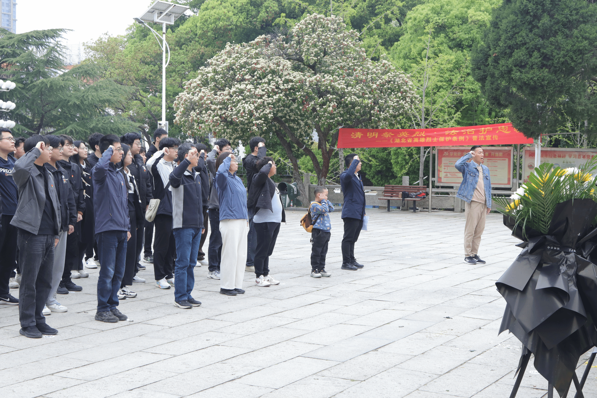 活动伊始,全体师生整齐列队于施洋烈士纪念雕像前,神情庄重肃穆。在激昂的国歌声中,大家向革命先烈致以最崇高的敬意。国歌奏毕,全场默哀一分钟,寄托对先烈的深切缅怀。随后,师生代表向施洋烈士纪念雕像敬献花篮,表达对先烈丰功伟绩的追思。
